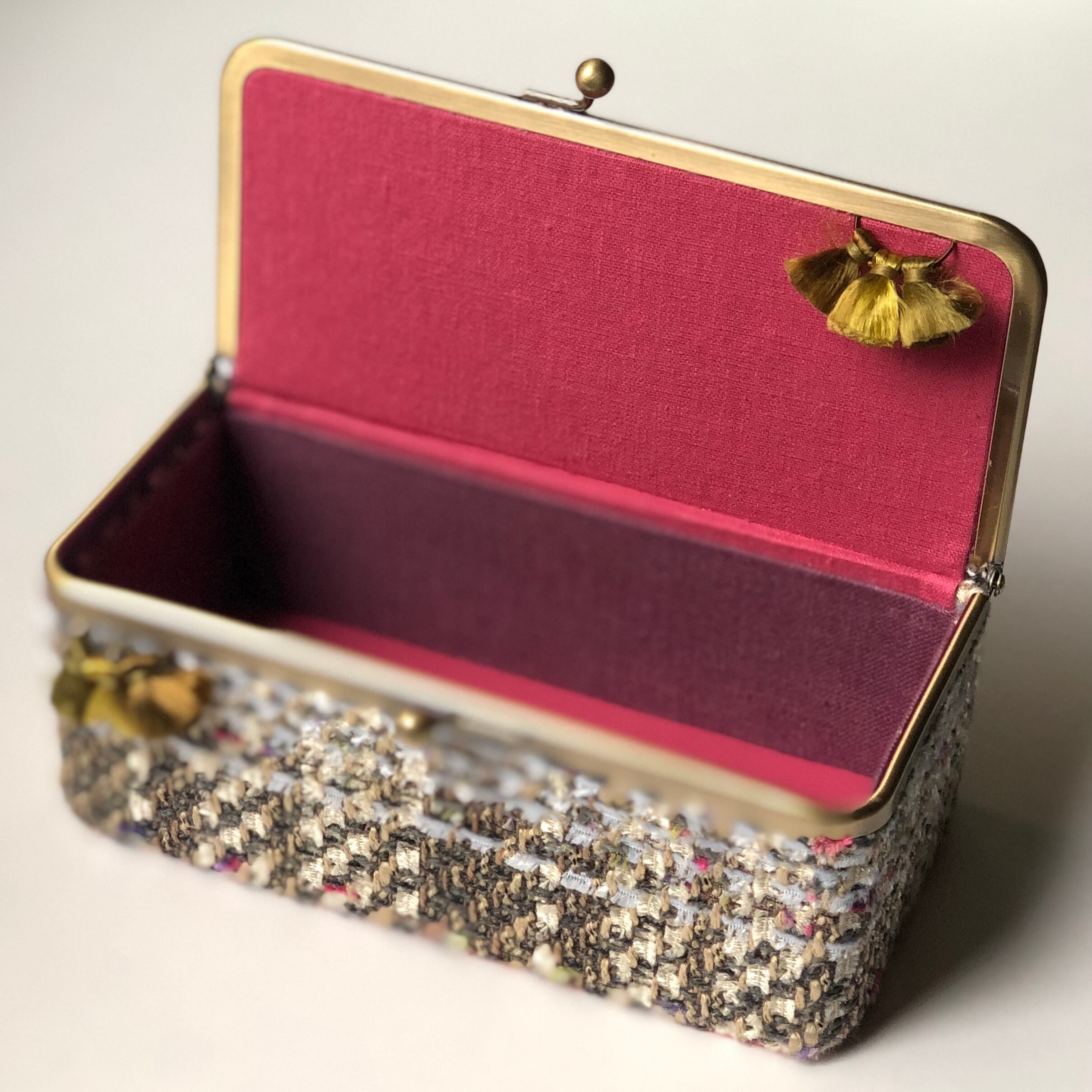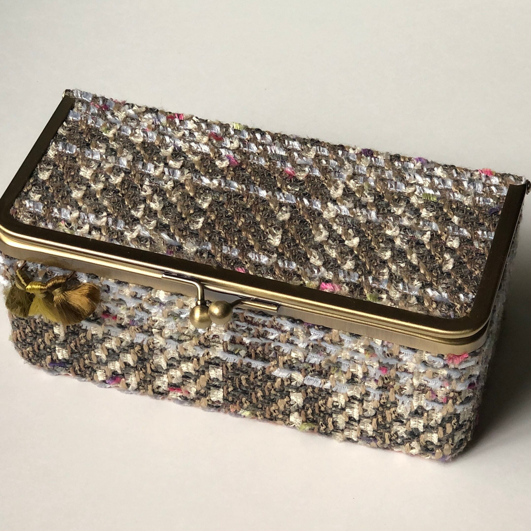 CHANELツイードとしても有名なイギリスのリントンツイードを使って作りましたがま口のBOXです。